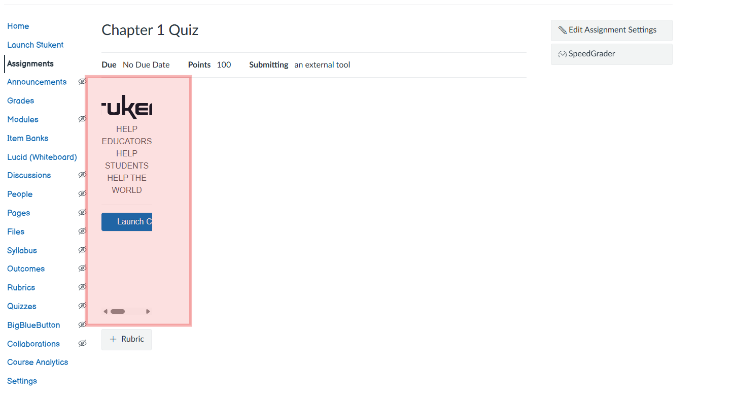 7. Check the Stukent LTI iframe on one of the assignment links that were generated upon integration. It should now show the full launch screen (as shown below).