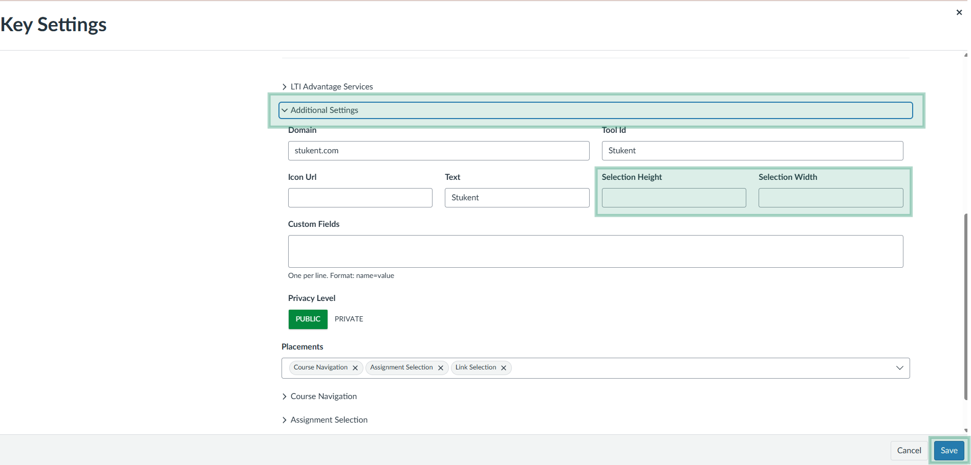 Occasionally, there are situations where customers who have been using Stukent for many years have some outdated settings. One of these settings is setting a Selection Height and Width on the Stukent LTI links that show in the Canvas courses. Often times, it ends up cutting the launch button down making it difficult for students and instructors to launch the material.