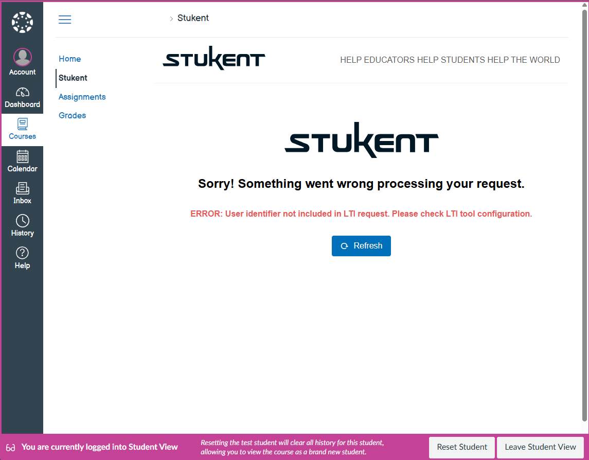 This article will detail the User Identifier Error in Canvas that is specifically triggered when previewing Stukent materials in Student View.