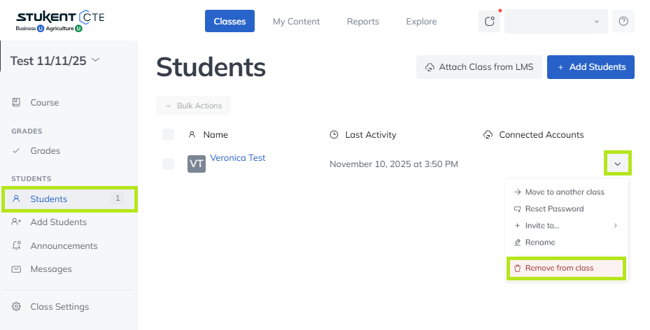 First, you will need to remove them from your course in Stukent CTE. Steps below on how to do so.