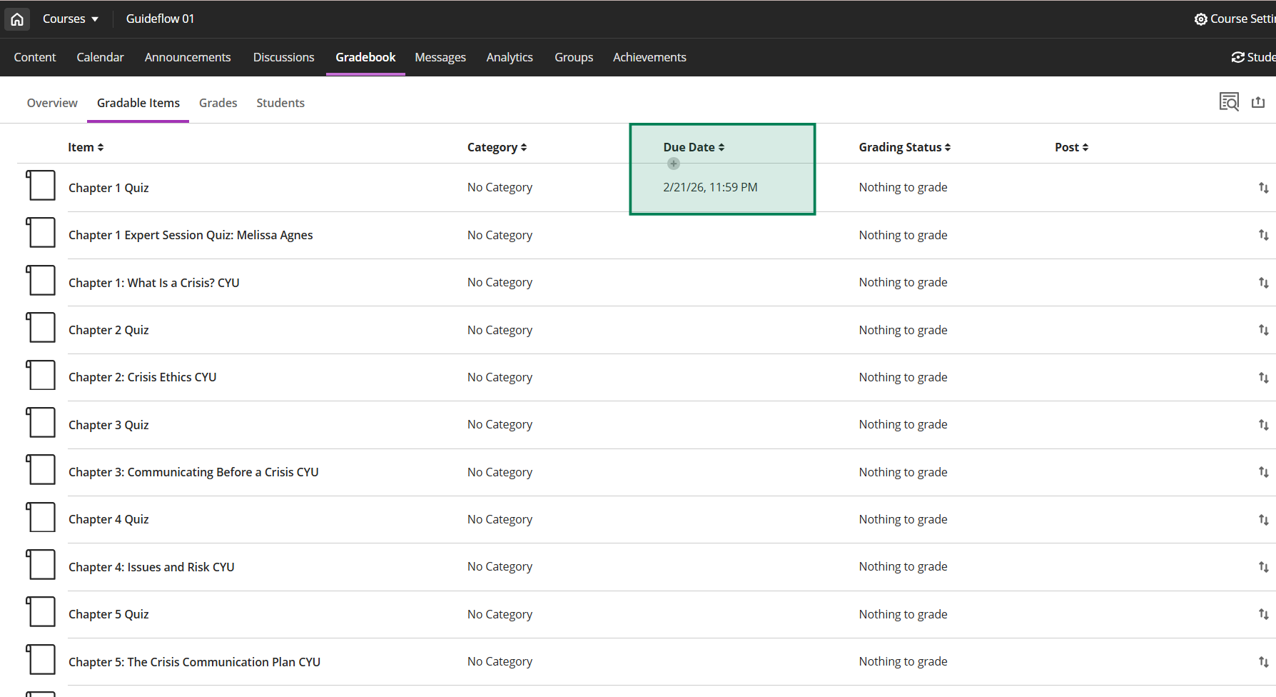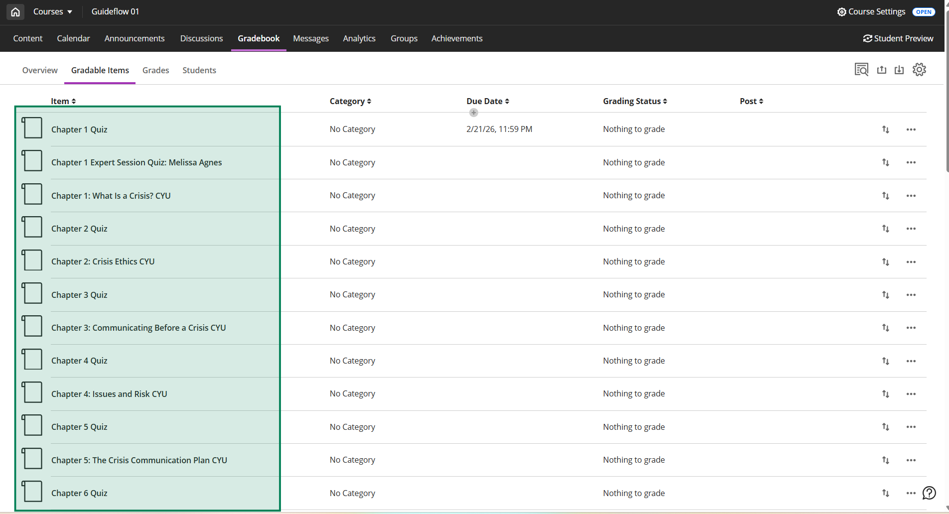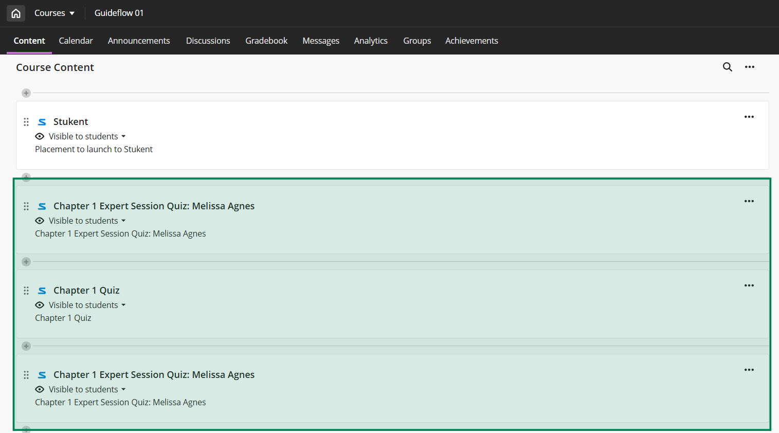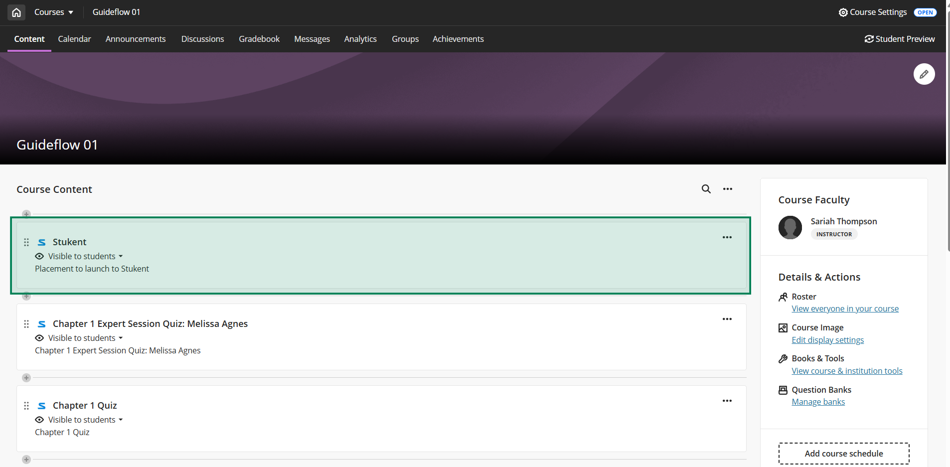 Here is an example of what the deep links and gradebook items will look like in Blackboard (this is for Ultra).