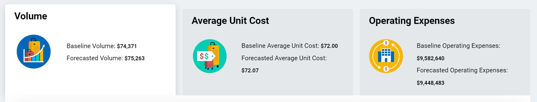 You can also select individual results for Volume, Average Unit Cost, and Operating Expenses. Click on each segment to see individualized results.