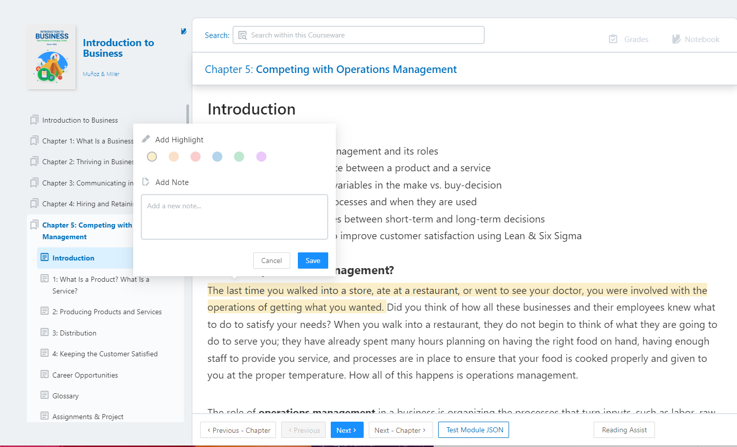 Answer: One of the biggest improvements for students can be found in the way note taking is done. When a student highlights a passage in the book they now have the ability to select among six (6) colors for easy visualization of note themes. Also there has been a section added for students to make notes on the selected passage.